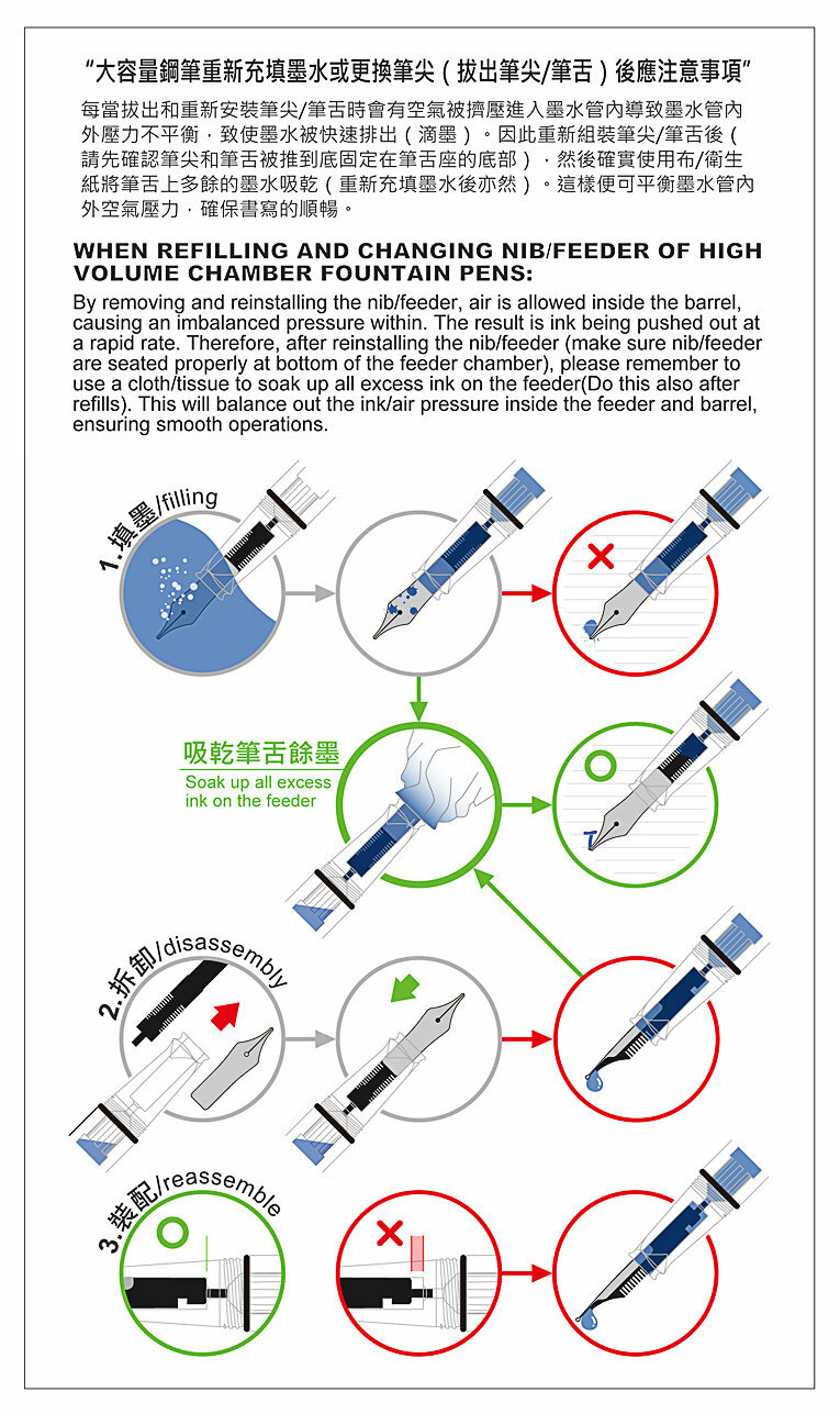 採用活塞上墨方式,所有零件均可重複拆裝,方便進行保養維修,最重要的是一支性價比高的鋼筆。
